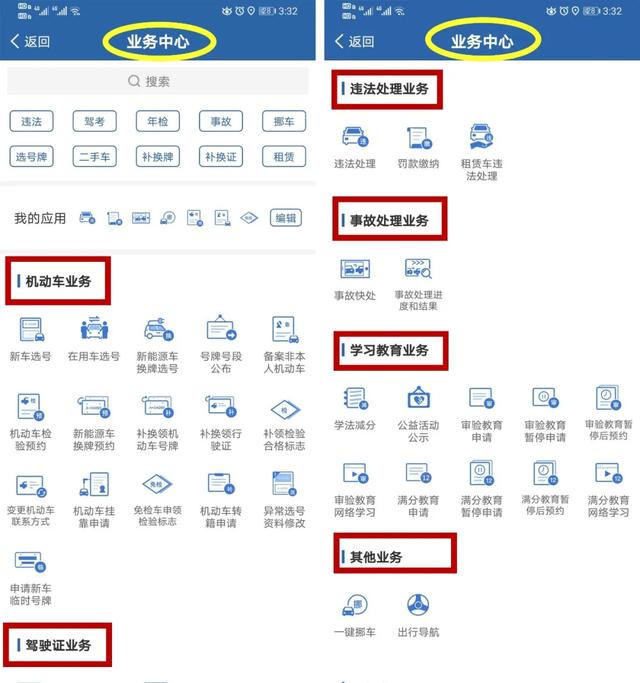 “交管12123”手机APP可办理哪些车驾管业务? 机动车业务 01 新车选号、在用车选号、新能源车换牌选号、补换领机动车号牌、补换领行驶证、补领检验合格标志、免检车申领检验合格标志、 ...