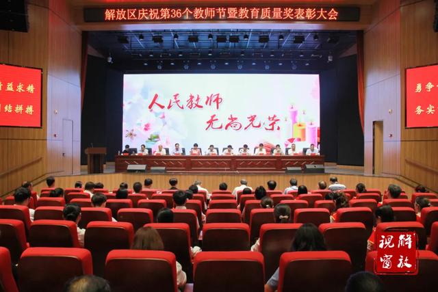 9月9日上午,解放区庆祝第36个教师节暨教育质量奖表彰大会在焦作地理信息产业园隆重召开,对为全区教育教学工作作出突出贡献的先进单位和先进个人进行了表彰。 现场受到表彰的教育工作者。 会上,区委副书记 ...