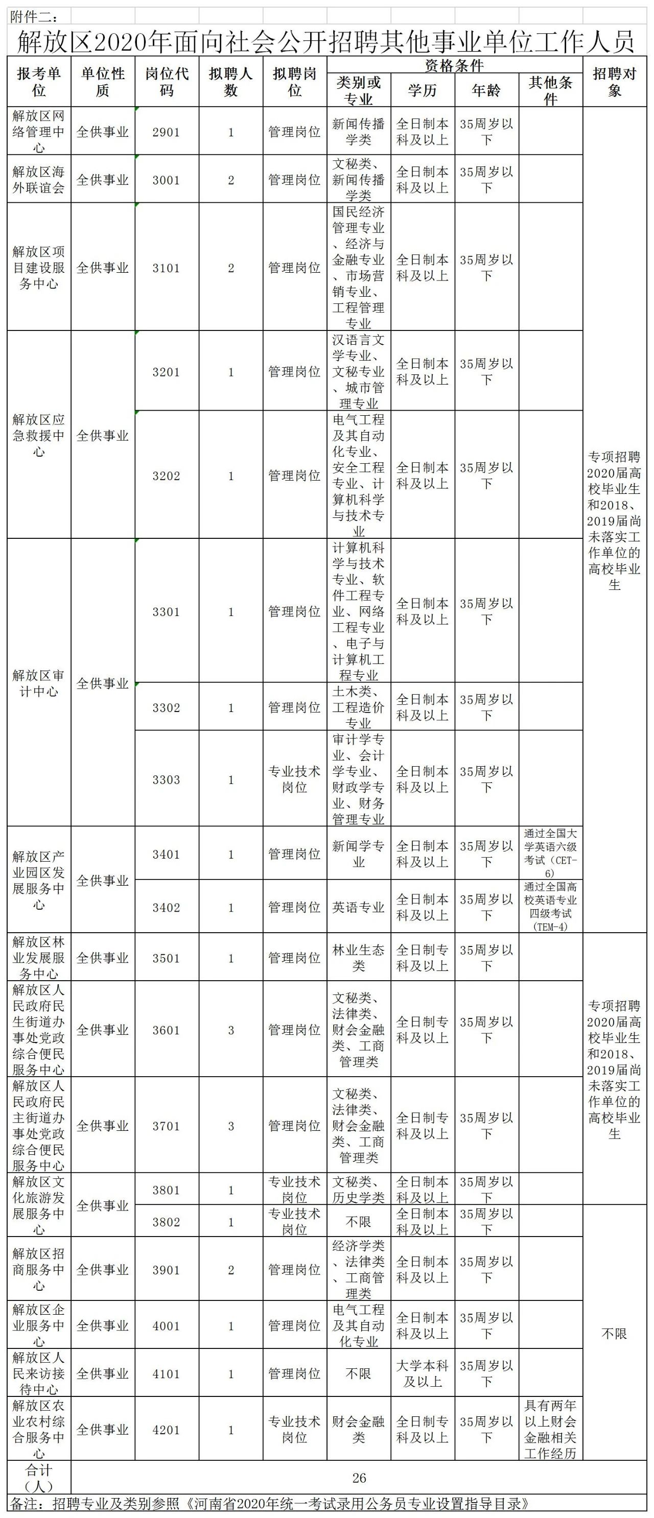 本帖最后由 qmy07070 于 2020-10-13 09:09 编辑 根据2020年度解放区工作需要,决定面向社会公开招聘事业单位工作人员126名,具体方案如下: 一、招聘岗位和名额 本次招聘由焦作市解放区事业单位公开招聘领导小 ...