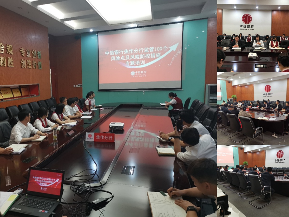 焦作分行组织开展“银保监近年检查100个风险点及风险防控措施”专项培训 为持续提升全行员工风险防控意识与风险处置能力,焦作分行按照郑州分行合规部统一部署,对《银保监近年检查100个风险点及风险防控措施》进行 ...