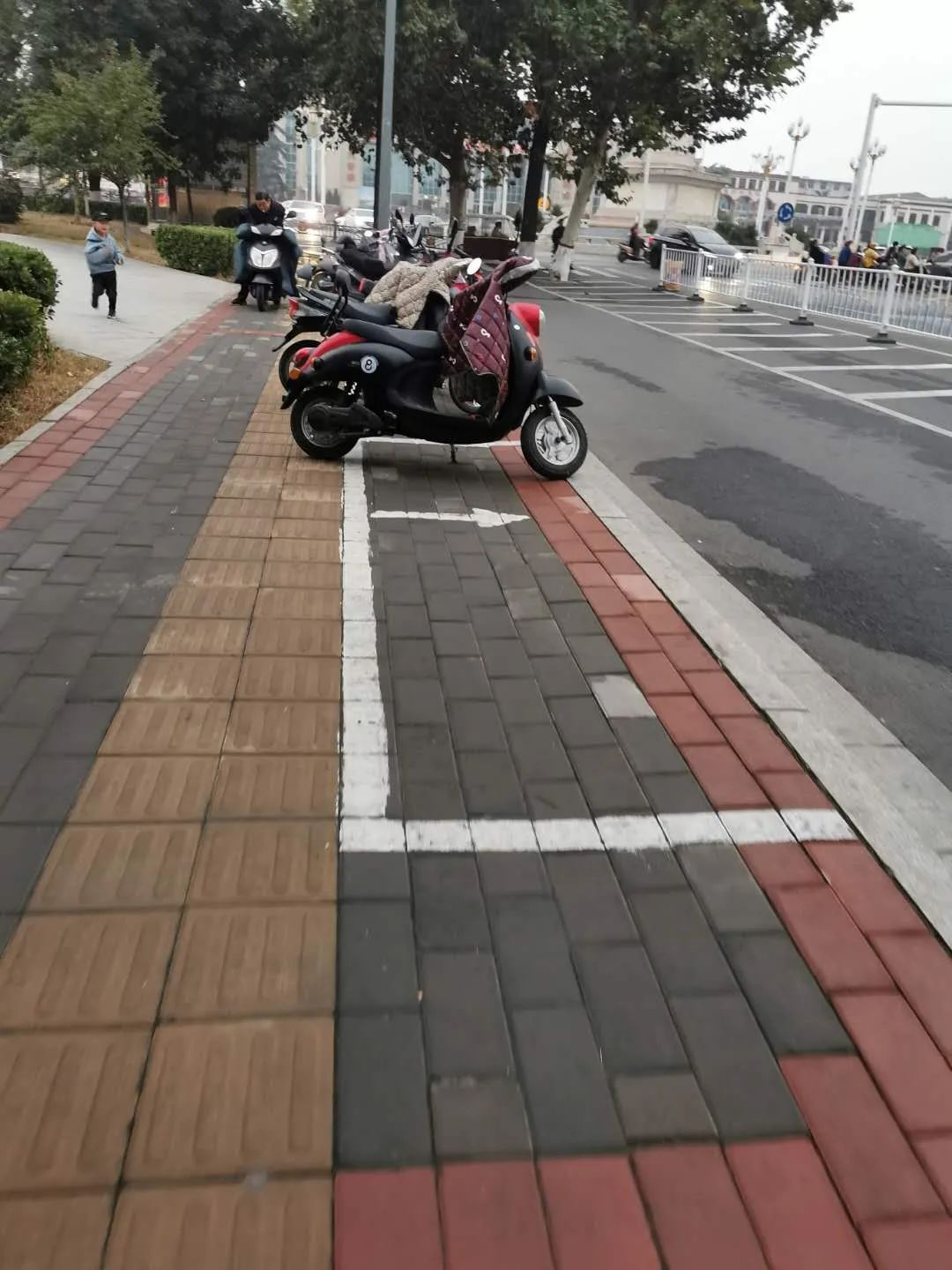 解放路与塔南路交叉口附近非机动车道上,这非机动车停车位划的,停还是不停?