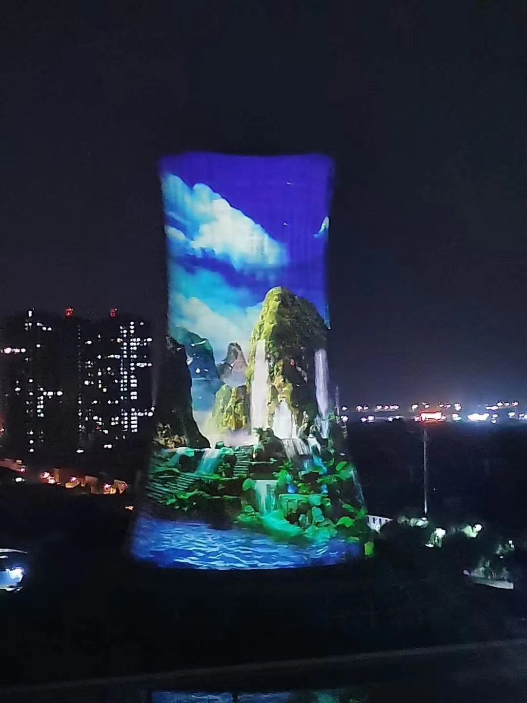 首次大烟筒灯光秀在电厂附近首秀