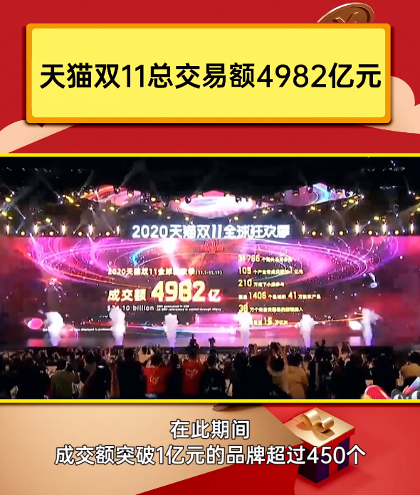 本帖最后由 Yunlianhui 于 2020-11-12 09:54 编辑 双十一终于结束啦!总交易额高达4982亿元,中国约有14亿人,平均每人花费了355元! 在2020天猫双11全球狂欢季纪录之夜,11月1日至11月12日0:00,天猫双11总交 ...