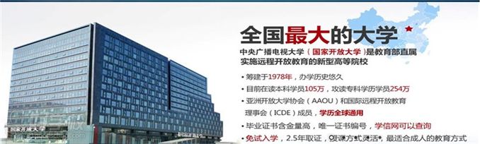 国家开放大学火热报名中…免入学、省时省力、好毕业 远程教育5大优势: 1、入学简单、符合条件免入学 2、可选专业多,全部名牌大学、文、理科近100个专业任你选择 3、国家承认学历,教育部电子注册网可查,可以考研 ...
