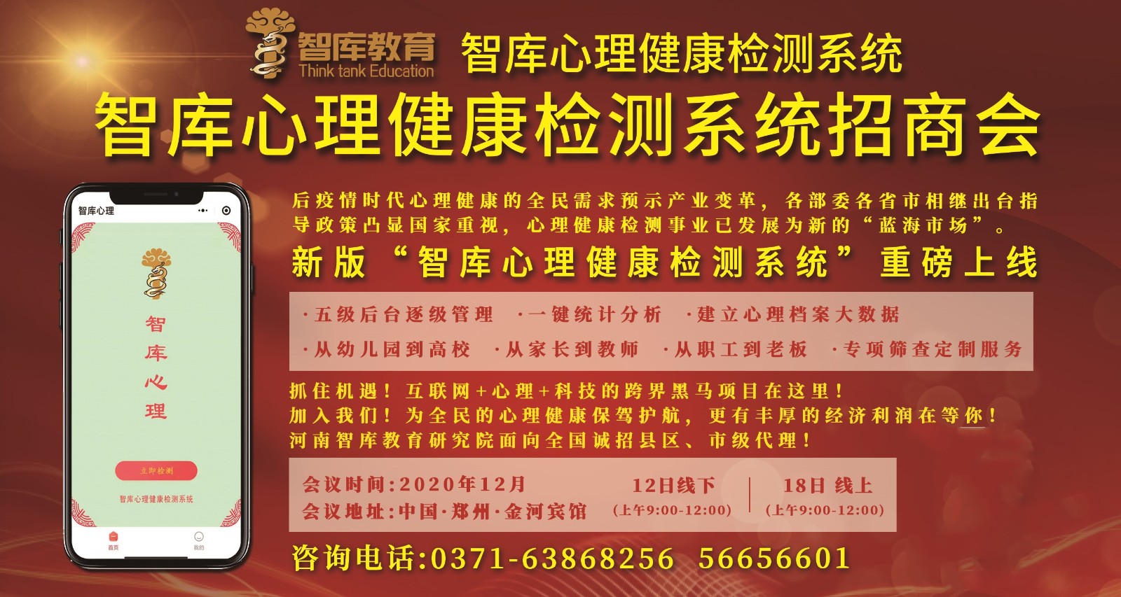 智库心理健康检测系统由中卫众康(北京)医学科学研究院心理健康研究所、河南智库教育研究院心理健康研究中心、河南省家庭发展研究会心理健康研究中心、河南心理健康研究所联合国内知名心理机构和高校专家共同研 ...