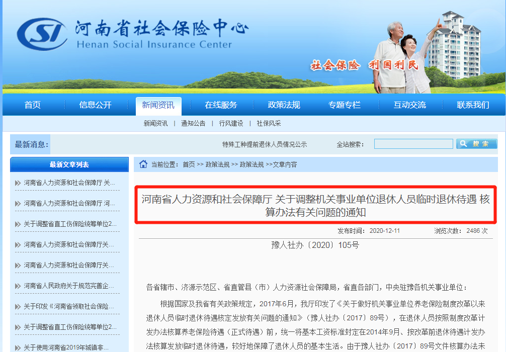 12月15日, 记者从省人社厅获悉,该厅印发《关于调整机关事业单位退休人员临时退休待遇核算办法有关问题的通知》,2020年1月及以后退休人员的临时退休待遇核算方法将有改变,新标准将于2021年1月起实施。 为 ...