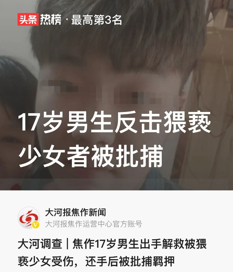 本帖最后由 imissyou11 于 2020-12-30 16:36 编辑 河南焦作,猥亵少女的逍遥法外,见义勇为的却被逮捕。原来,和某强行猥亵少女,17岁小王出手相救带少女离开。和某追上去,一拳打在小王脸上,小王被打之下还击了 ...