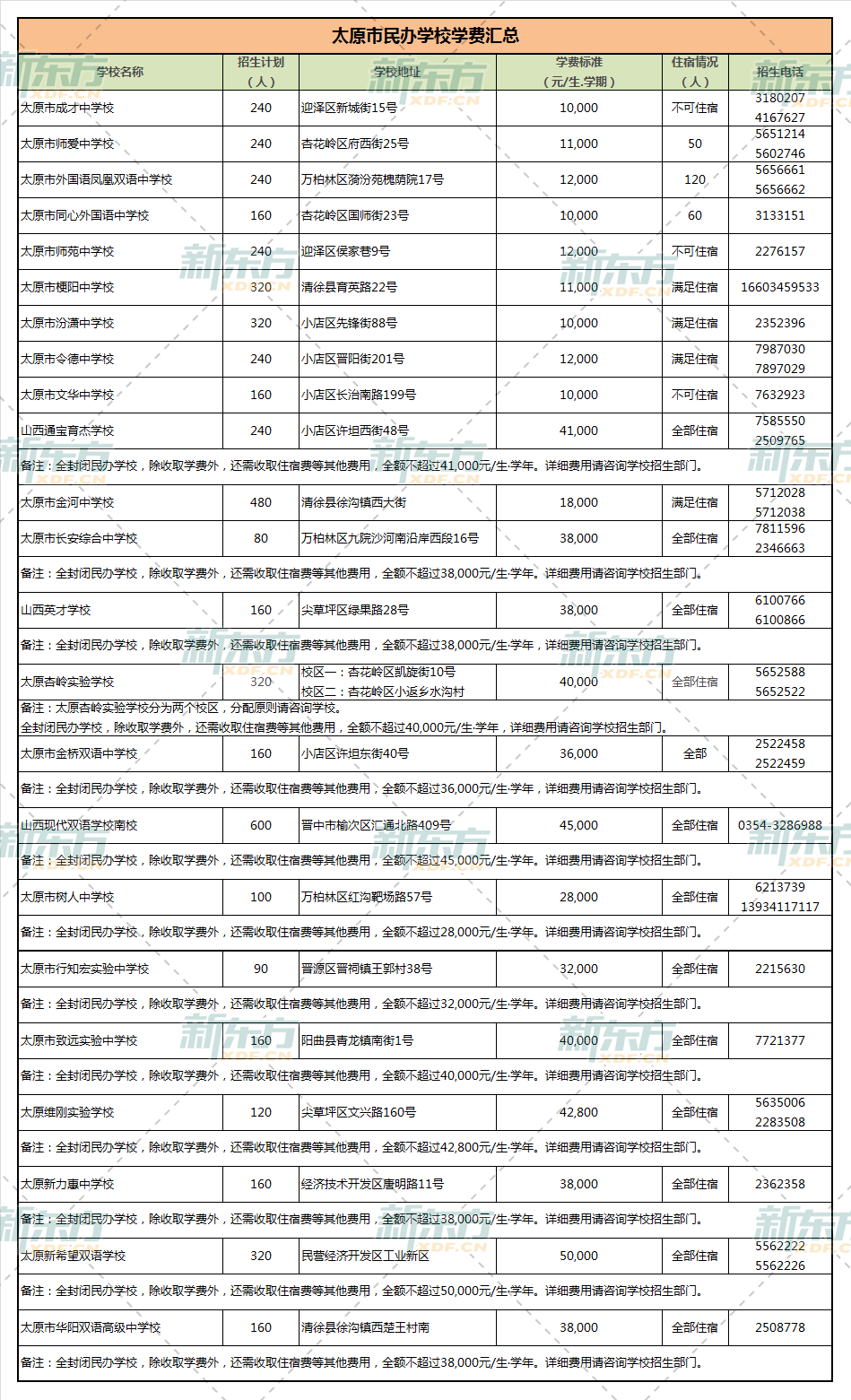 小新汇总了2020年太原市民办高中:知达常青藤、师爱中学、凤凰双语、师苑中学、令德中学、文华中学、通宝育杰、杏岭实验、山西现代双语学校、新希望双语,等学校的学费情况、学校地址、住宿情况、招生电话。 http:/ ...