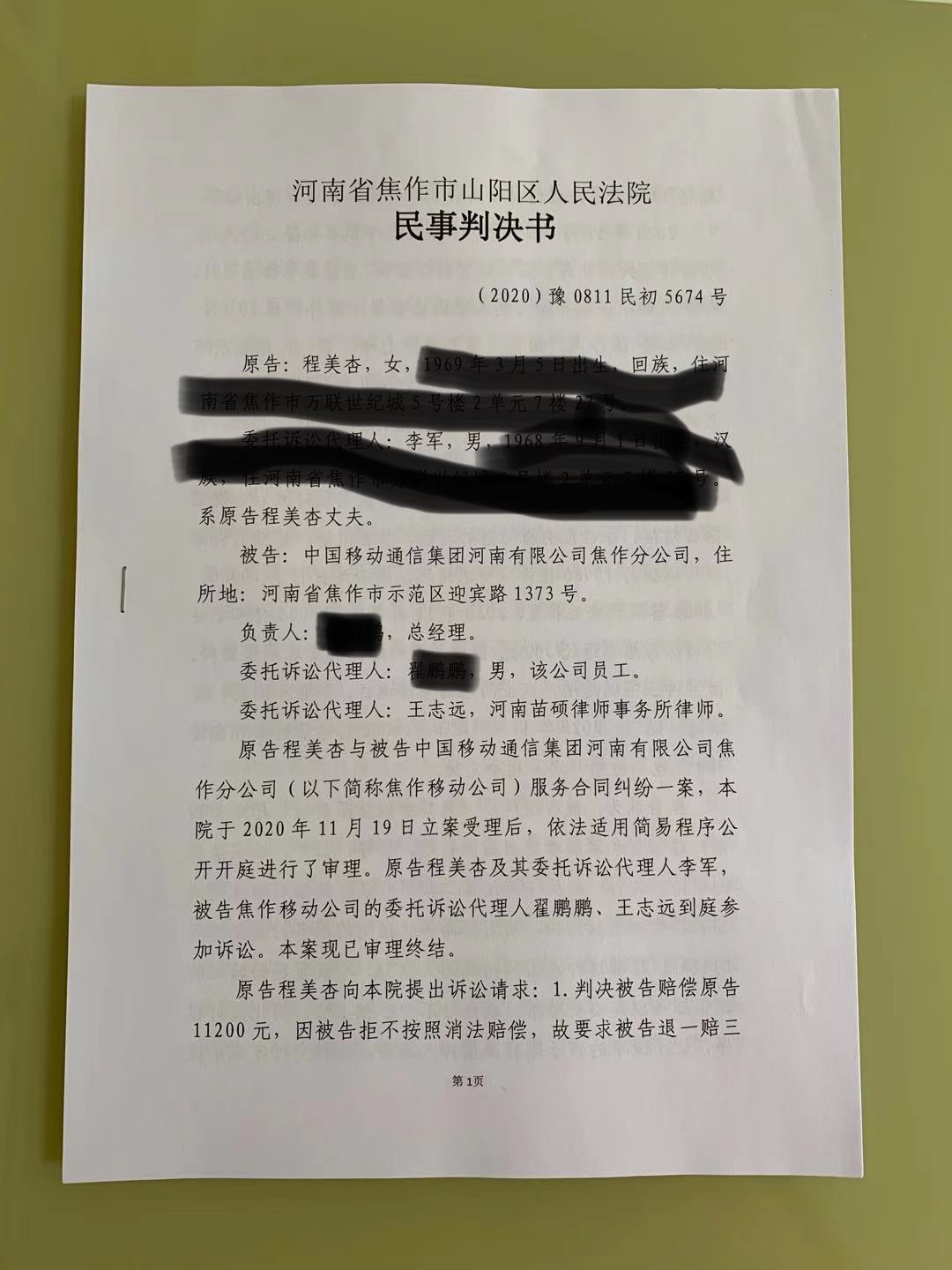 美杏传媒起诉焦作移动公司一审败诉,起因:美杏四岁外孙女误点电视遥控器“同意”,移动公司连续扣除美杏15个月每月20元儿童剧场费共300元!美杏要求移动退一赔三支付1200元,移动不支付!美杏起诉到焦作山阳区法院 ...