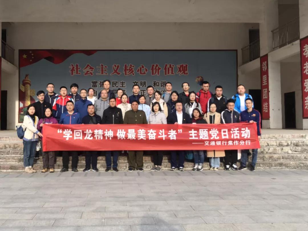 为进一步巩固和深化“不忘初心、牢记使命”主题教育成果加强党员教育管理,激发广大党员干事创业、开拓进取的积极性和主观能动性,11月1日,交通银行焦作分行组织全体党员干部开展了“学回龙精神,做最美奋斗者”主 ...