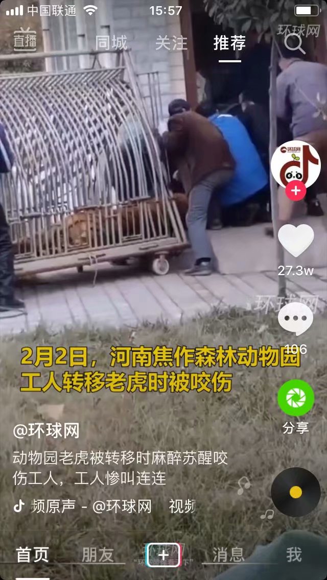 昨天,也就是2月2日,环球网消息“家乡焦作森林动物园,一工人师傅转移老虎过程中,老虎被装入笼子时麻醉药失效突然醒来被咬伤,已送医”,详见截图附图。 首 ...