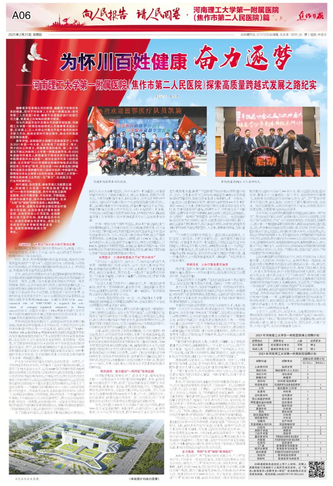 为怀川百姓健康奋力逐梦——河南理工大学第一附属医院(焦作市第二人民医院)探索高质量跨越式发展之路纪实