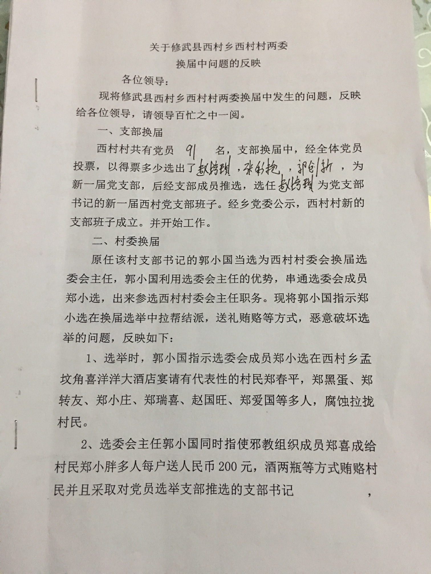 焦作市修武县西村乡党委书记王华勾结西村郭小国违法乱纪 ...