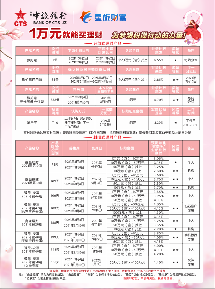 焦作中旅银行星旅财富本周3月2日至10日在售理财 ...