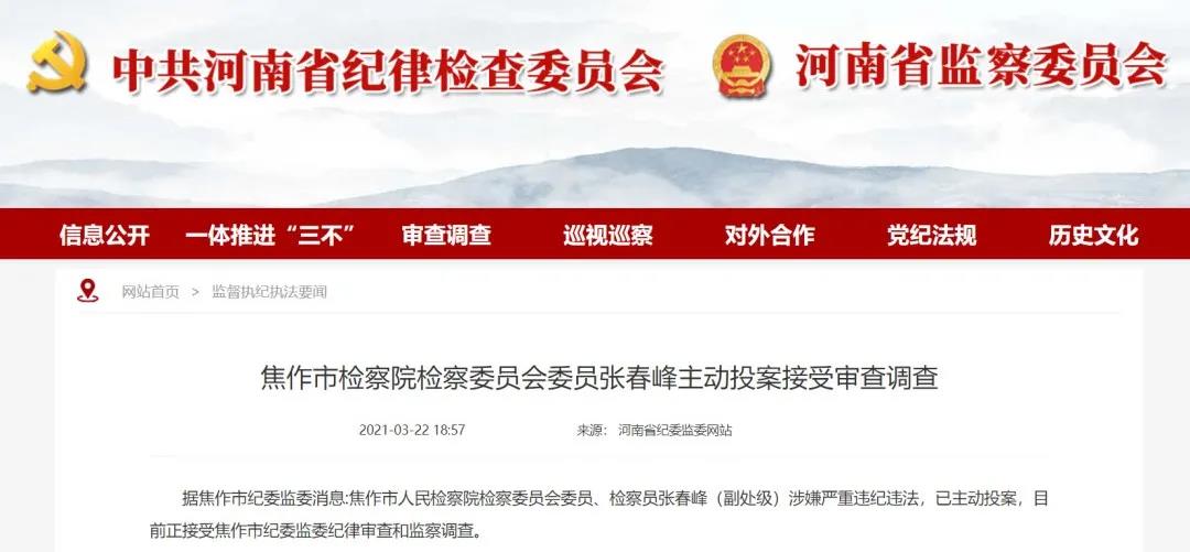 焦作市人民检察院检察委员会委员、检察员张春峰(副处级)涉嫌严重违纪违法,已主动投案,目前正接受焦作市纪委监委纪律审查和监察调查。 张春峰简历 张春峰,男,汉族,1962年9月生,河南孟州人,1985年11月加 ...