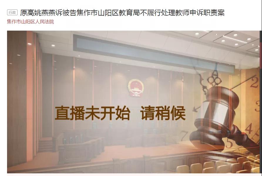 关于17中女教师姚燕燕起诉山阳区教育局一案明天上午将开庭! 关于明天上午的开庭,今天下午,山阳区教育局回应了!表明态度:法不辩不明,理不说不清尊重姚老师通过司法途径反映诉求和问题坚决服从法院判决,如果 ...