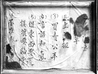 在井冈山革命博物馆里,珍藏着一块灰白色的方粗布,长87厘米,宽81厘米,上面写着:(1)捆铺草;(2)上门板;(3)买卖公平;(4)言语和气;(5)借东西要还,损坏要赔偿;(6)不准乱翻东西。 这是井冈山革命 ...