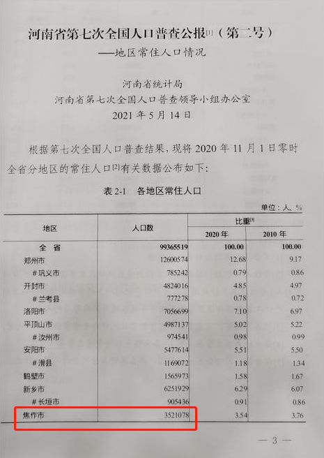 刚刚,河南省政府新闻办召开新闻发布会,河南省第七次全国人口普查公报公布!焦作市常住人口数:3521078人!