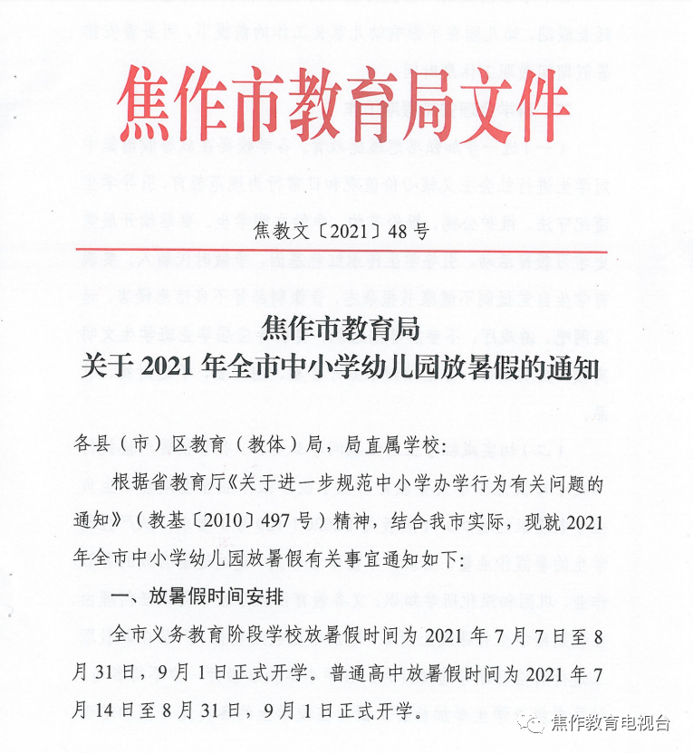 一、放暑假时间安排 全市义务教育阶段学校放暑假时间为2021年7月7日至8月31日,9月1日正式开学。普通高中放暑假时间为2021年7月14日至8月31日,9月1日正式开学。 各中小学校必须严格执行统一的放假时间,不得擅自 ...