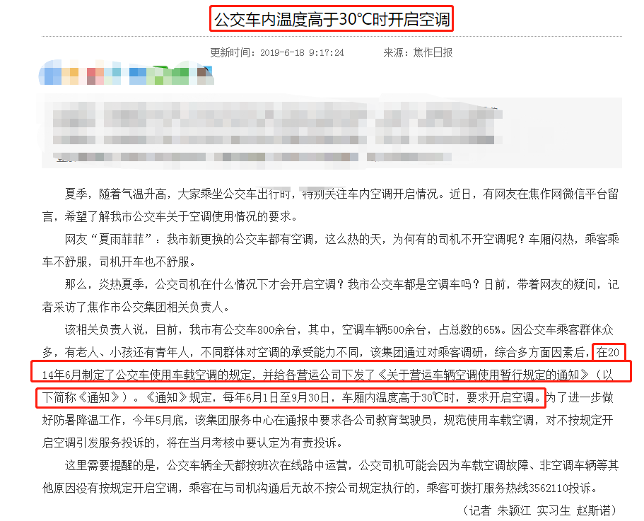 上个周末,焦作已经开始了三伏天,可早在入伏之前焦作一个月内,焦作已经因为高温频频“称霸”全国实时气温排行榜。最近,有市民反映,乘坐公交车时要求司机开空调,却被司机告知规定气温不超过35℃不让开空调。 既 ...