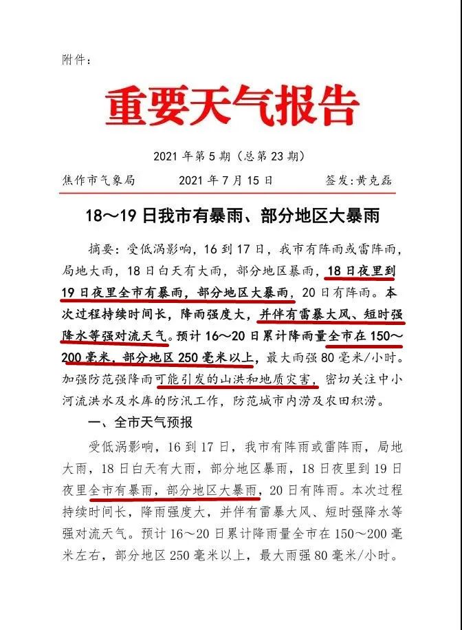 焦作人注意了!紧急 非常重要 入汛以来最强降水即将来袭! 暴雨 大暴雨 特大暴雨要来了! 焦作气象昨天发布重要天气预报 18日夜里到19日夜里焦作全市有暴雨,部分地区有大暴雨!并伴有雷暴大 ...