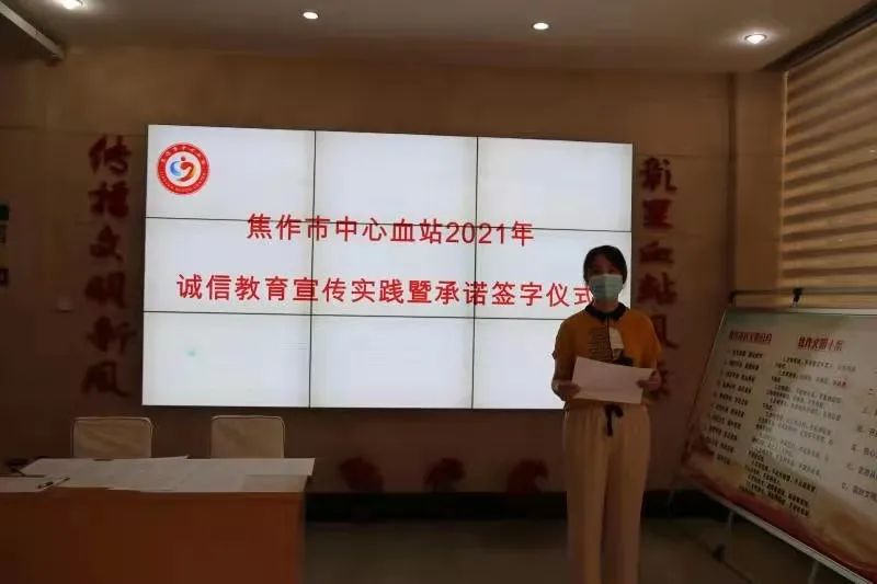 为了进一步增强广大干部职工的诚信意识,大力培育和践行社会主义核心价值观,扎实推进诚信教育实践活动。8月18日上午,焦作市中心血站在办公楼内大厅开展2021年诚信教育宣传实践暨承诺签字仪式。 活动最后,大家依 ...