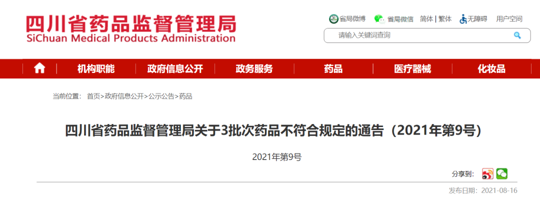 本帖最后由 柠檬的向日葵 于 2021-8-23 10:43 编辑 近日四川省药品监督管理局发布一则关于3批次药品不符合规定的通告 快自查一下家里是否有这些药品↓↓ 来源 | 四川省药品监督管理局、成都发布 ...