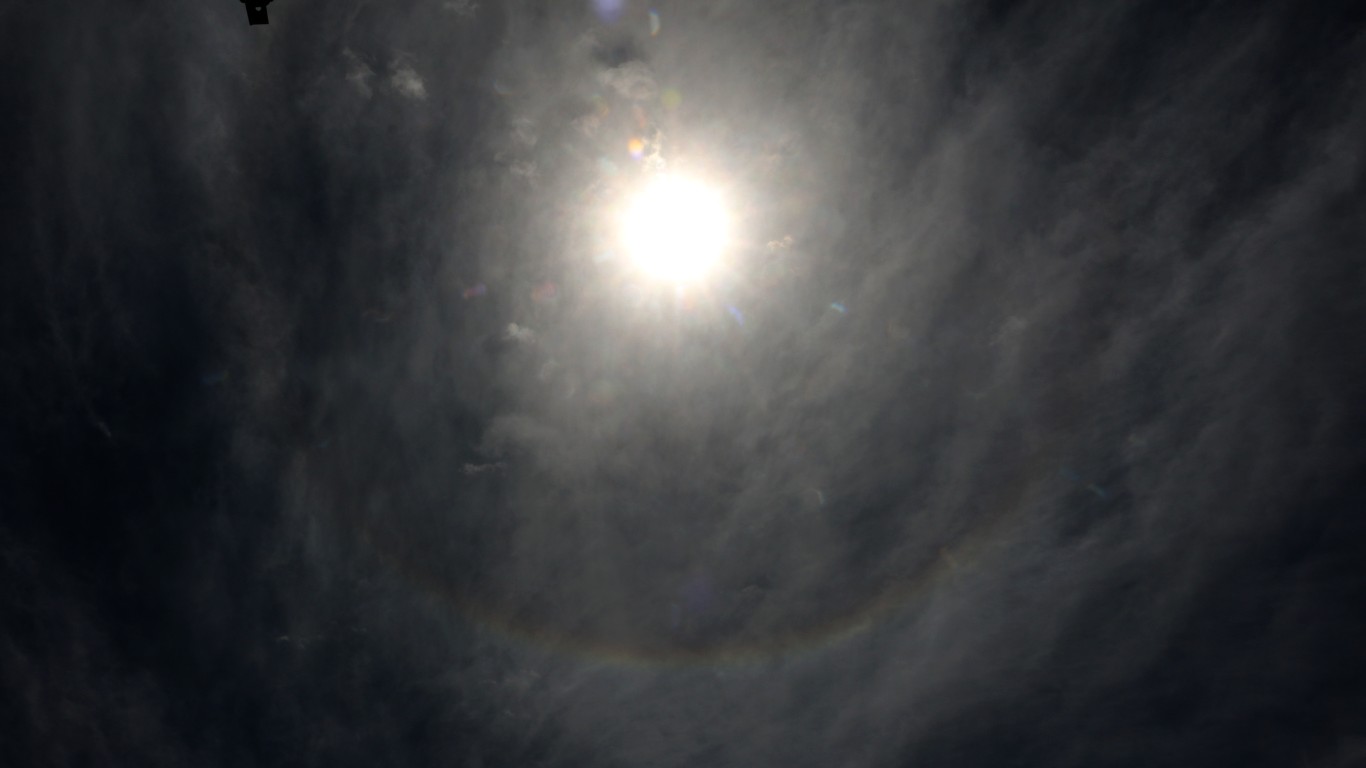 【多情絮语】日晕,又叫圆虹,是一种大气光学现象!是日光通过卷层云时,受到冰晶的折射而形成。日晕半径通常是22度和46度!多出现在春夏季节。 &n ...
