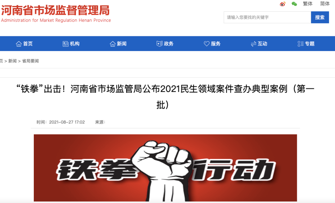 8月27日河南省市场监督管理局公布“铁拳”行动2021民生领域案件查办典型案例(第一批)此次公布的11起典型案例涉及到食品、医药、物业管理等与老百姓生活密切相关 具体如下 一、驻马店市市场监督管理局查处孙某 ...