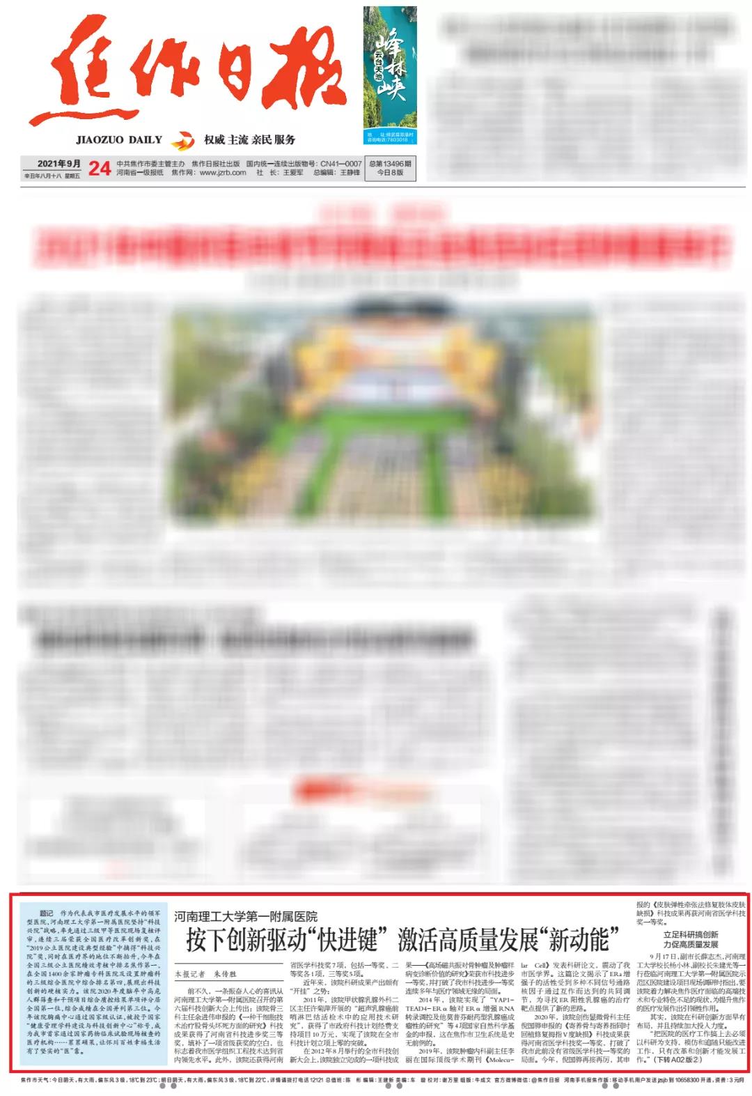 题记:作为代表我市医疗发展水平的领军型医院,河南理工大学第一附属医院坚持“科技兴院”战略,率先通过三级甲等医院现场复核评审,连续三届荣获全国医疗改革创新奖,在“2019公立医院建设典型经验”中摘得“科技兴 ...