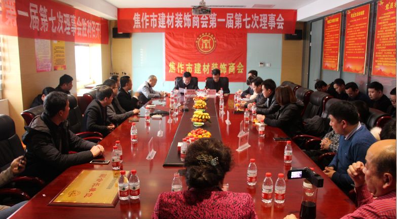 焦作市建材装饰商会第一届第七次理事会在鸿运国际商城圆满举行。焦作市建材装饰商会会长武云,名誉会长陈彬彬、杨栋,秘书长赵风祯,监事长张德坤,郭社新、叶建民、魏春海、毛爱凤、李庆宣、马峰、史广亮、石红侠、 ...