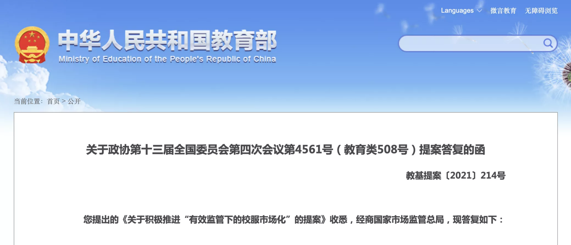 焦作日报校园之声今天 点击上方蓝字关注我们,新闻及广告服务热线:15036522156 近日,教育部网站公布对《关于积极推进“有效监管下的校服市场化”的提案》的答复,提出下一步,教育部将会同有关部门进一步加 ...