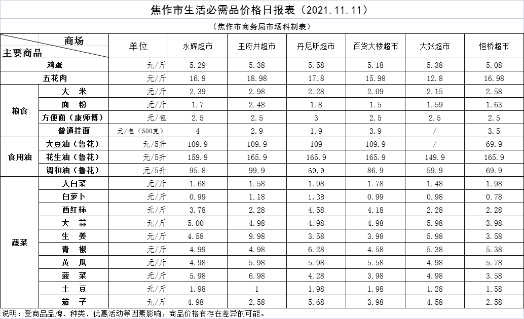 2021年11月11日焦作市生活必需品价格日报表 ...