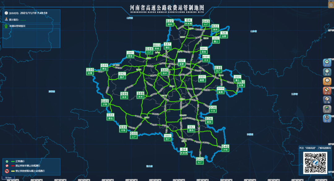 省高速公路路警联合指挥中省内高速公路通行顺畅。施工路段:1.京港澳高速(G4)确山服务区封闭施工。(施工时间:2020年6月1日-2021年12月31日) 2.京港澳高速(G4)新乡服务区封闭施工。(施工时间:2021年6月15日-12 ...