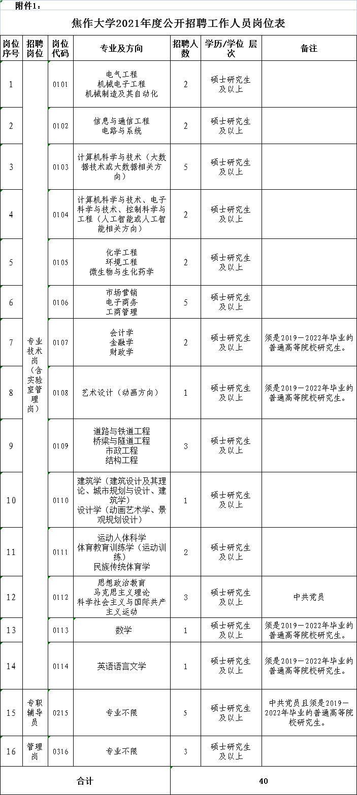 焦作大学公开招聘40人!