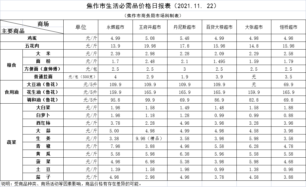 2021年11月22日焦作市生活必需品价格日报表 ...