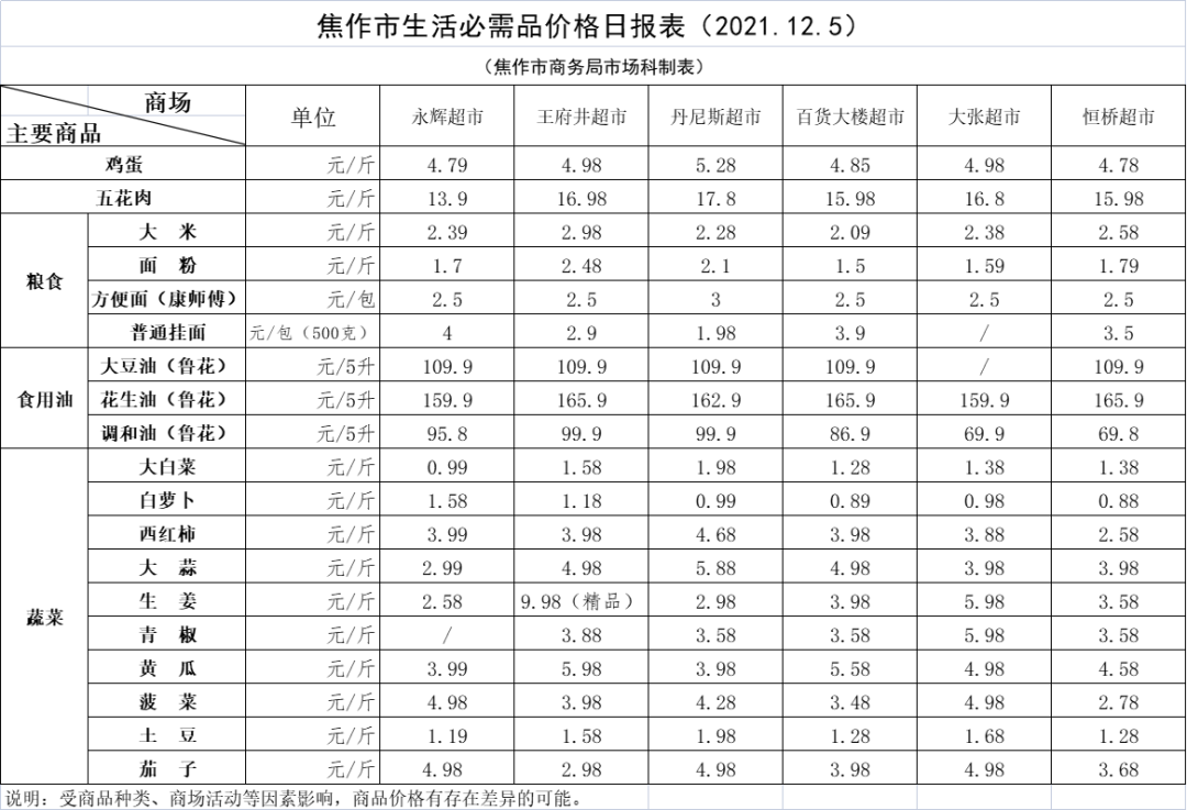 2021年12月5日焦作市生活必需品价格日报表 ...