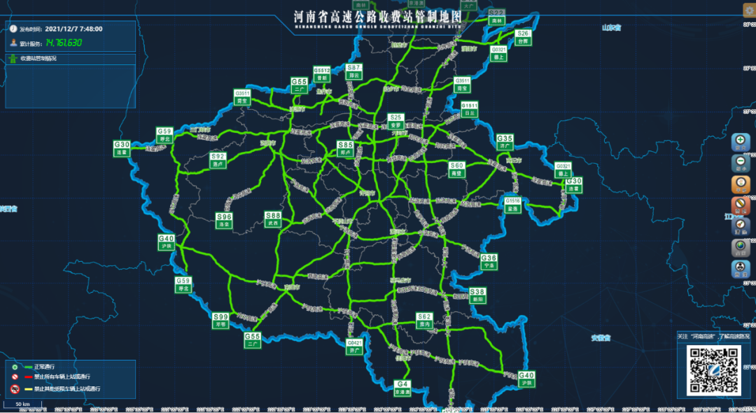 发布时间:2021年12月7日08:00省高速公路路警联合指挥中省内高速公路通行顺畅。施工路段:1.京港澳高速(G4)确山服务区封闭施工。(施工时间:2020年6月1日-2021年12月31日) 2.京港澳高速(G4)新乡服务区封闭施工。 ...