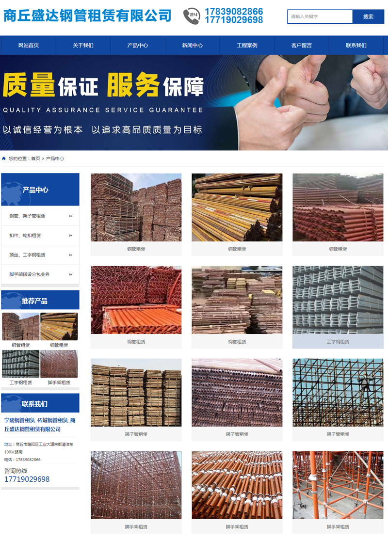 商丘盛达钢管租赁有限公司(17839082866)专业从事宁陵钢管租赁,柘城钢管租赁,商丘钢管租赁是河南省内早以建筑工程钢管租赁的公司,从事移动脚手架、架子管租赁、扣件,轮扣,顶丝,工字钢,外脚手架等租赁服务。更多 ...