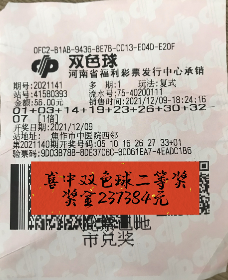 坚持守号2年多 焦作购彩者喜中双色球二等奖23万余元! 12月9日晚,福彩双色球第2021141期开奖,当期开出红球号码:01、14、19、23、26、30,蓝球号码:10。其中,从焦作市中医院西邻的4158 ...