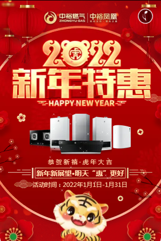 焦作中裕燃气喜迎2022,中裕凤凰燃气具保驾护航送安全,送品质,送福利,买中裕凤凰,得精美礼品,特价产品惠中惠,抽奖活动乐不停,欢欢喜喜迎新春,过大年! 活动时间:2022年1.1日到1.31日活动地点:解放东路二环 ...