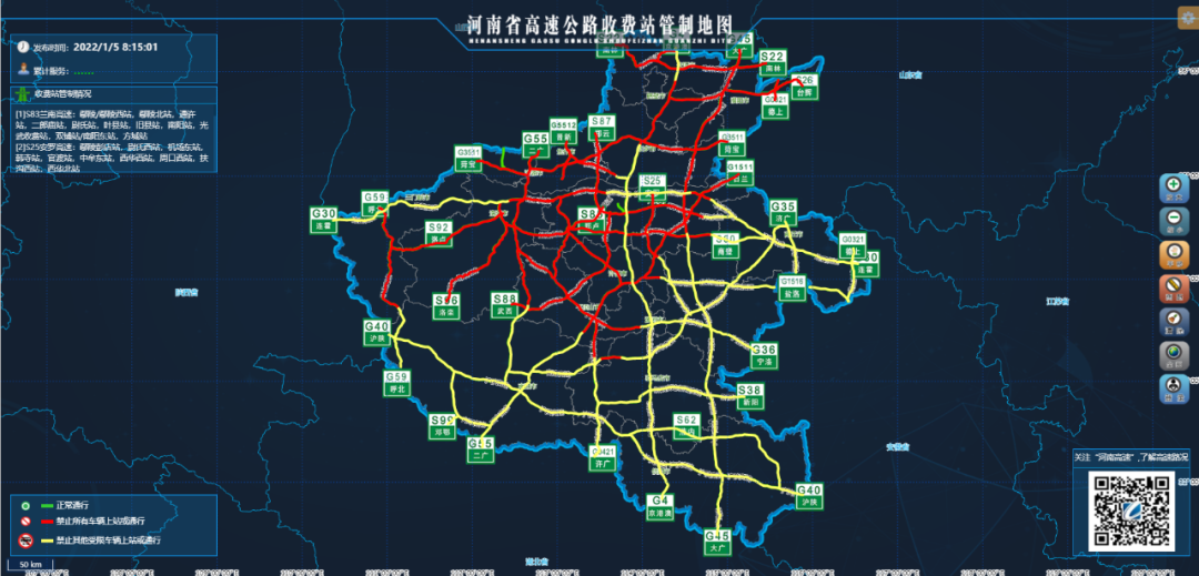 发布时间:2022年1月5日08:24省高速公路路警联合指挥中省内高速公路通行顺畅。施工路段:1.京港澳高速(G4)确山服务区封闭施工。(施工时间:2020年6月1日-2022年3月31日) 2.京港澳高速(G4)新乡服务区封闭施工。( ...