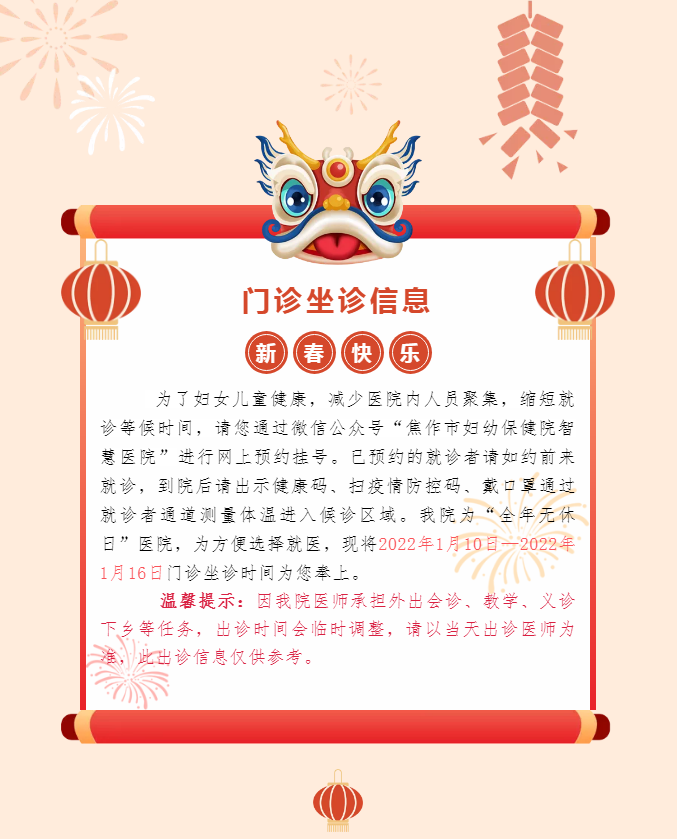 【温馨告知】焦作市妇幼保健院2022年1月10日—2022年1月 ...