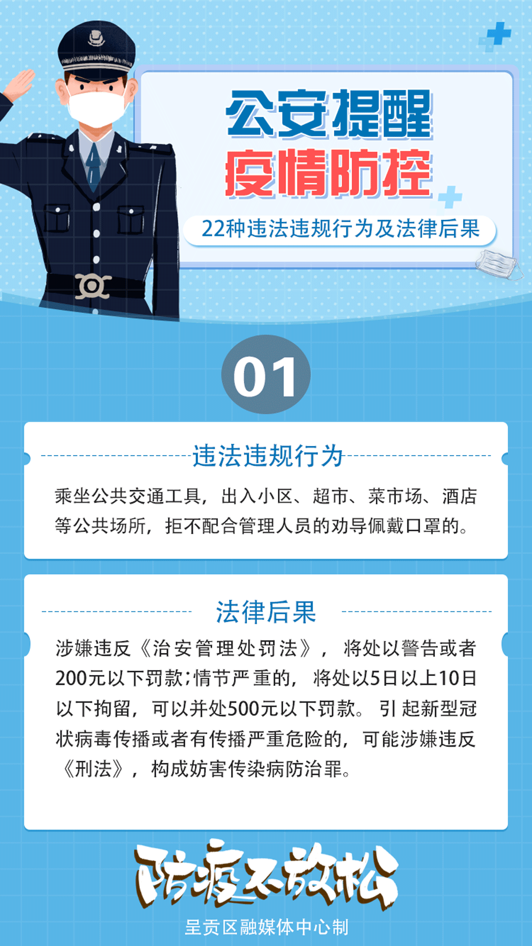为帮助广大人民群众全面掌握疫情防控中可能出现的违法违规行为及可能产生的法律后果,推动疫情防控工作依法依规高效进行,特编制了以下22种疫情防控违法违规行为及可能产生的法律后果。 来源:刑法读库 ...