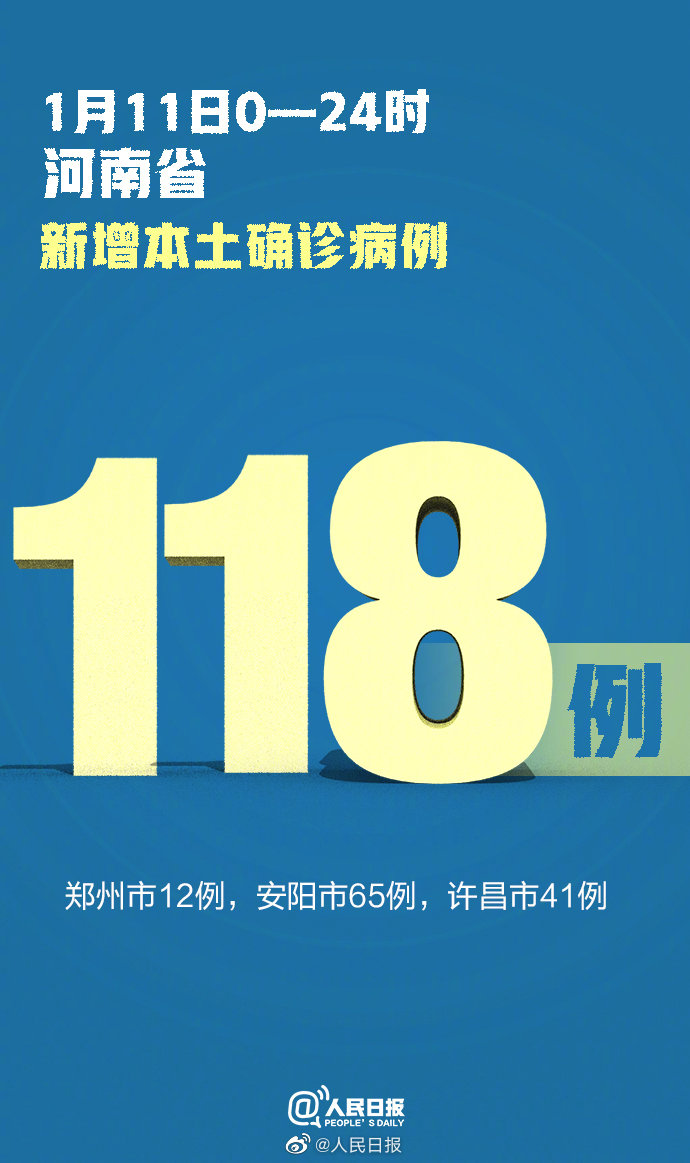 1月11日0—24时,河南全省新增本土确诊病例118例(郑州市12例,安阳市65例,许昌市41例);无新增无症状感染者和疑似病例;1例本土确诊病例治愈出院。 2020年1月21日至2022年1月11日24时,全省累计报告确诊病例2147例 ...