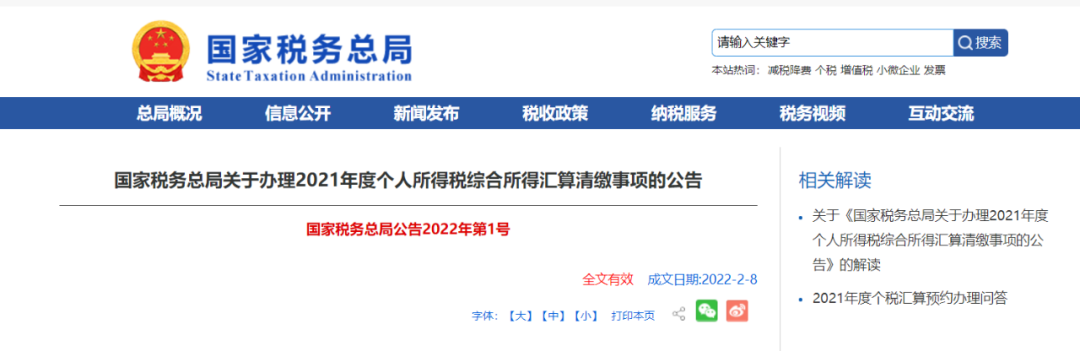 2月9日国家税务总局发布公告2021年度个人所得税综合所得汇算清缴将于2022年3月1日开始办理截止日期为6月30日 哪些人需要办理年度汇算?有哪些办理方式?老年人可以享受哪些办理年度汇算的服务?这些问题税务部门 ...