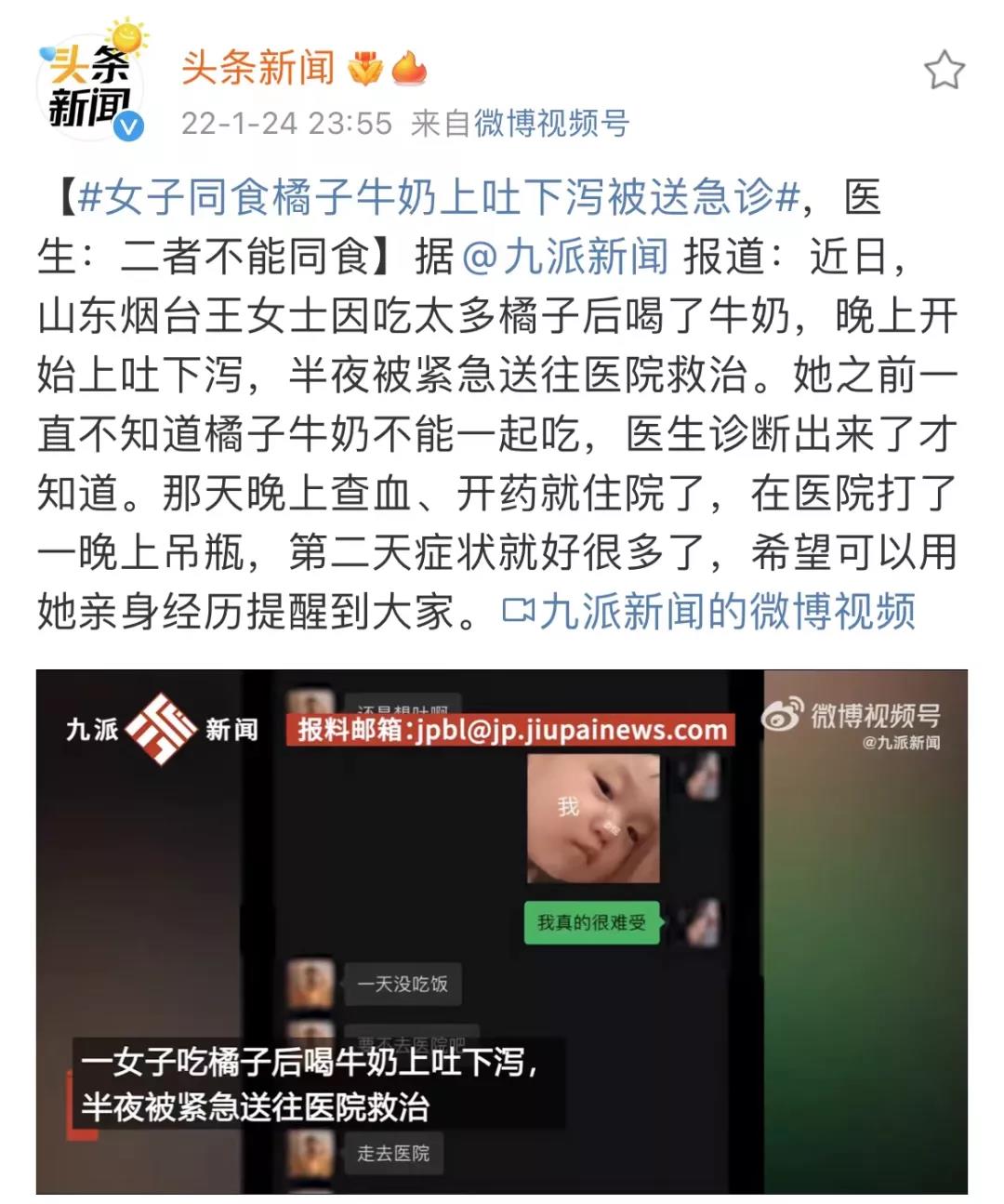 每到过年,家里少不了的年货便是一箱橘子。橘,谐音“吉”,有大吉大利之意,在有些地方还有“局气”的寓意,再加上它好剥、味甜,实属招待亲友的必备良品。然而前两天有人因为吃橘子上了热搜,还和牛奶有关:女子同 ...