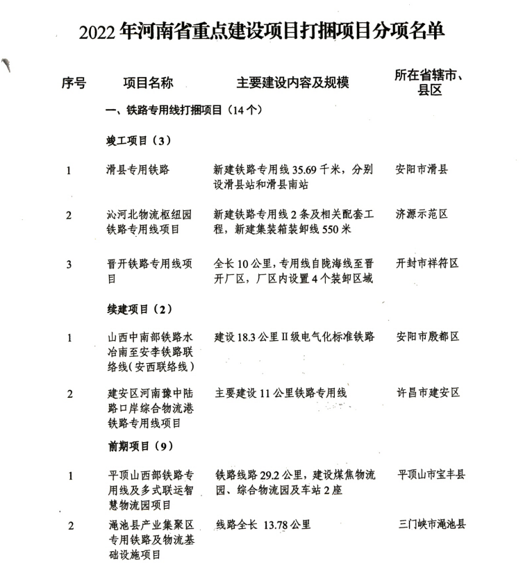 2022年河南省重点建设项目打捆项目分项名单公布,222个项目总投资2675亿元,年度计划完成投资761亿元。其中,计划建成项目45个、续建项目83个、计划新开工项目75个、前期项目19个,均纳入省重点建设项目考评范围。附 ...