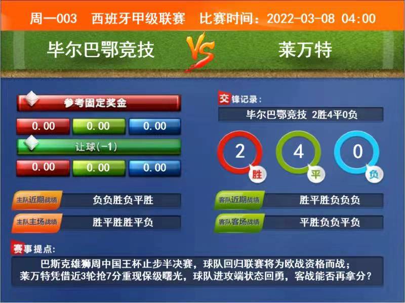 周一003 西甲 毕尔巴鄂竞技 VS 莱万特