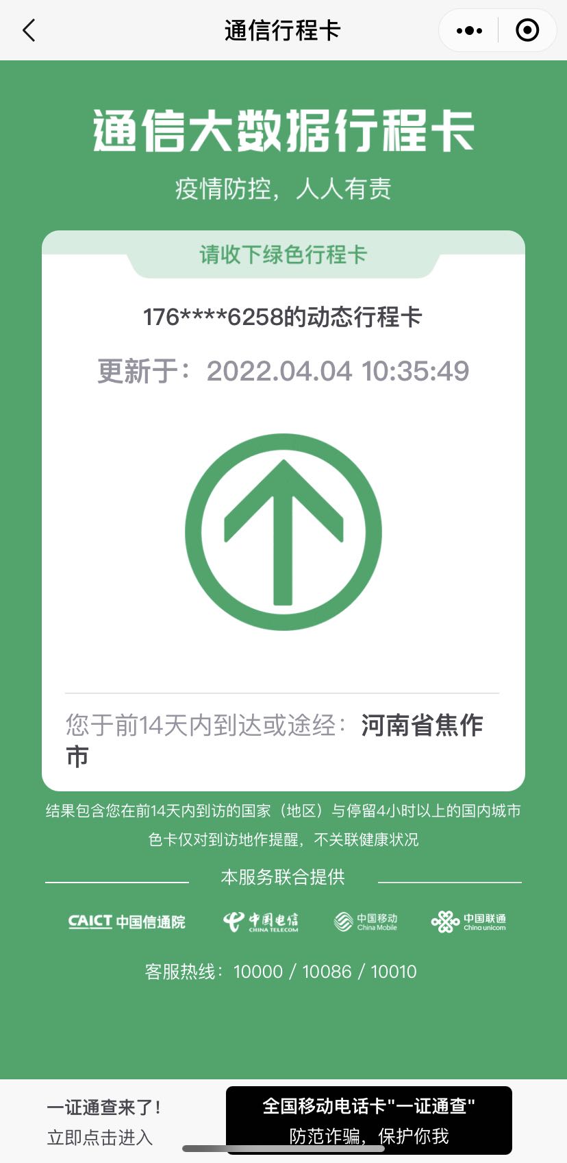 刚刚!焦作成功“摘星”了!你的行程卡变回来了吗? 从4月4日8时起,将修武县王屯乡前董村、城镇办合欢小区由中风险地区调整为低风险地区!至此,焦作全域均为低风险区域! 刚刚!小编刷新行程卡时 惊喜发现自己 ...